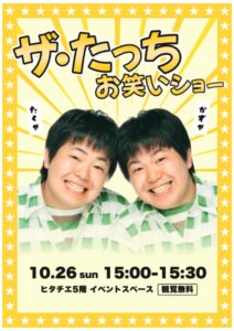 ヒタチエに「ザ・たっち」がやってくるー☆ 2025 10/16 ヒタチエに「ザ・たっち」が登場!! なんと観覧無料です☆ 日時:10/26(日) 15:00~15:30 場所:ヒタチエ5階 イベントスペース 観覧無料 ニュース&イベント