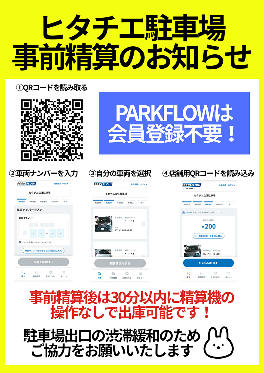 ヒタチエ駐車場12月10日リニューアル 2025 12/12 ヒタチエ立体駐車場・別館駐車場が駐車券不要のカメラ認証パーキングにリニューアルいたしました。 便利になった駐車場でますます快適に。ヒタチエに是非よりみちしてください! 立体駐車場詳細はこちら 立体駐車場お支払いページはこちら 立体駐車場Q&Aはこちら お知らせ