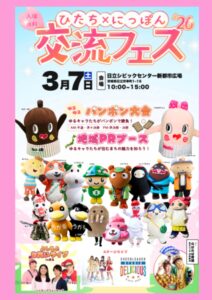 🌸ひたち×にっぽん交流フェス🌸 2026 3/03 県外含め18体のゆるキャラたちが日立に大集合🌸 よしもとお笑いライブ・チームハレルヤ・スタジオデリシャスによるステージイベントもありますよ✨ キッチンカーも出店します!! ニュース&イベント